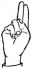 На ћирилици написано ЈАКОВ КЛЕМЕНОВИЋ састоји се из 15 слова [?]. Исписано ћириличном једноручном азбуком за глувонеме: